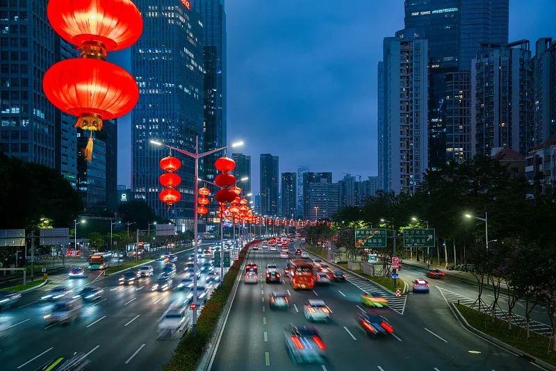 深圳市滨河大道两旁挂上了红灯笼,庆祝新春佳节到来。图源视觉中国